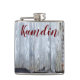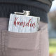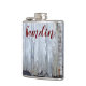 The flask itself is fine. It’s a cheap flask, obviously bought in bulk, however am prepared to overlook that. Given that it is a personalized item, I would have liked to have seen gift boxing instead of the generic packaging. Terrible printing, and/or quality. It’s a cheap, tacky vinyl. It is not cut straight and is also applied in a way that it is overhanging the bottom, causing the glue to catch on items and it will eventually roll and tear, damaging the wrap.
