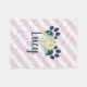 A fun, whimsical fleece blanket that can be personalised just for your furry friend. This blanket features two navy blue paw prints and a fun bouquet of flowers placed upon an adorable pink striped background.