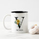 Personalised Floral Alphabet V Monogram Two-Tone Coffee Mug