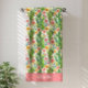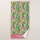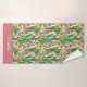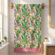 This floral bath towel design is complete with a pretty seamless pattern of cacti and flowers in a bright watercolor style. The cacti are on a white background, and there is a place to add your own name.
