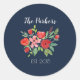 Add a special touch to your envelopes or party favours with this personalised floral sticker featuring red flowers on a navy blue background.