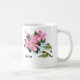 Ruby Throated hummingbirds hovering by pink flowers on tree branch