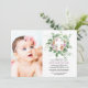 Celebrate the baptism or christening of your little one with this elegant floral cross invitation. Featuring a delicate watercolor greenery wreath, blush roses, and a soft pastel colour palette, this design is perfect for a girl’s religious ceremony. Customise with your child's photo and event details to create a meaningful keepsake for family and friends.