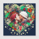 Pretty red, dark blue and beige colourful flowers whimsical folk art style floral heart. Add a picture of you and your partner in the personalise area. Sweet romantic gift for Christmas, Valentine's Day or an anniversary.