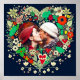 Pretty red, dark blue and beige colourful flowers whimsical folk art style floral heart. Add a picture of you and your partner in the personalise area. Sweet romantic gift for Christmas, Valentine's Day or an anniversary.