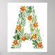 Floral Letter A in orange flowers and green watercolor leaves. Personalised floral monogram. Botanical illustration. Cute and brith design. Lovely and stylish personalised item.