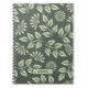 Personalised floral pattern spiral notebook. Green floral pattern with small name field in block text at bottom centre.