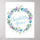 Personalised Floral peonies name poster print features modern hand written typography within a lovely floral wreath with your own name. Makes a great and thoughtful gift for a new baby. Also available with birth details underneath.