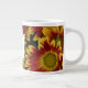 Jumbo coffee mug with bold yellow and orange daisies! Personalise with your initial and name. Perfect for gift giving, but be sure to keep one for yourself!