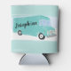 This personalised can wrap or can sleeve features a painted style illustration of a teal blue food truck against a striped background. With your own name or short message in black script lettering on the side of the truck this is perfect for food truck themed parties or for creating a fun personalised gift for your favourite food truck owner.