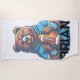 Personalised beach towel with a great football theme. Modern design with an athletic bear holding a football. Customise with your name. Great for football fans. Use the template to create your own personalised beach towel.