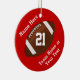 Personalised Football Ornaments in Your COLORS and TEXT. One Football Ornament at a time, Type in each Player's Name, Football Team Name and his Jersey Number, Monogram or Delete it. Change the Red background colour to your school colours, see Instructions below. Personalise ONE ornament, Add to Cart, Go Back to customise the next football ornament. Look at the cool back of these football ornaments.