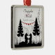 Personalised for Couples Charming Silhouette Mountain Bear Couple Holiday Christmas Ornament or Wedding Keepsake in Shades of Black, White and Red. Personalise with names and a date. ~