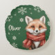 Add a touch of woodland charm to your holiday décor with this personalised round pillow, featuring an adorable fox adorned with festive holly.