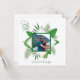 Your favourite couples photo and personalised text highlight this green leaf square Save the Date invitation card.