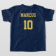 Show off your love for the French national soccer team with this custom t-shirt that perfectly blends style and support. Featuring the iconic gold colour and 2 stars of Les Bleus, this shirt also boasts a personalised name and number on the back. Made from high-quality materials, it is both comfortable and long-lasting. Whether you're watching the game from home or at the stadium, this t-shirt is a must-have for any soccer fan looking to show their team spirit.