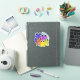 The stick looks amazing. Unfortunately, it would not stick on our suitcase as it was textured. When we found a non-textured (smooth) suitcase, the sticker stuck and looks great. The printing looked awesome.