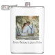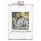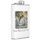 The flask itself is fine. It’s a cheap flask, obviously bought in bulk, however am prepared to overlook that. Given that it is a personalized item, I would have liked to have seen gift boxing instead of the generic packaging. Terrible printing, and/or quality. It’s a cheap, tacky vinyl. It is not cut straight and is also applied in a way that it is overhanging the bottom, causing the glue to catch on items and it will eventually roll and tear, damaging the wrap.