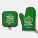 Personalised Fun Stand Back I Am Gonna Cook Green Oven Mitt & Pot Holder Set