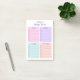 This practical, clean looking, personalised, Post-it notepad with four coloured categories with lines to write on and boxes to check off would be great for helping you organise your daily tasks. It's soft pastel colours are pink, purple, aqua, and peach and the modern, clean font is in purple. Get some for yourself and some for friends and loved ones. Because who can't use a little help staying organised and on task every day?