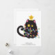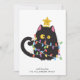 Add a personal touch to your holiday greetings with this customisable Christmas card featuring an adorable cat wrapped in colourful holiday lights and topped with a festive star.