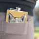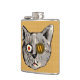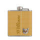 The flask itself is fine. It’s a cheap flask, obviously bought in bulk, however am prepared to overlook that. Given that it is a personalized item, I would have liked to have seen gift boxing instead of the generic packaging. Terrible printing, and/or quality. It’s a cheap, tacky vinyl. It is not cut straight and is also applied in a way that it is overhanging the bottom, causing the glue to catch on items and it will eventually roll and tear, damaging the wrap.