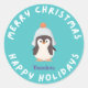 Personalised Funny Christmas Holiday Penguin Blue Classic Round Sticker