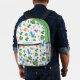 Funny Dinosaur, leaves Pattern Personalised Name, green leaves and Funny Dinosaur watercolor gingham pattern printed backpack with optional personalisation. and space to add your kid's name. The perfect gift for any kids boys or girls, perfect for your child to take to school or preschool, sports or work. l! Customise the text field for a great bag for back-to-school