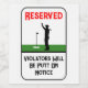 Personalised Funny Golf Parking Label. This modern and trendy golf parking label is perfect for any golf fan or golfer. Featuring the humourous text "Reserved" "Violators Will Be Putt On Notice" and a silhouette of a golfer putting on a green, this label makes a great gift for dad, grandpa, or any golf enthusiast. Ideal for birthdays, Father's Day, or as a Christmas present, this elegant and fun design adds a touch of humour to any space. Whether for a golf course or a hobby room, this personalised label is a cool and cute way to show love for the sport. Customise it with a name to make it a unique and special gift.