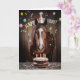 This funny personalised horse birthday card is perfect for anyone who loves horses. The front of this card has a horse wearing a birthday hat. The horse surrounded by birthday decorations and a cake with candles. You are able to personalise the inside of this card with your name and custom message, or you can leave the message as "Wishing you a very happy birthday".