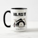 Personalised Funny Mr Fix It Mug. Funny Design has Mr. Fix it with the name of the fixer upper.