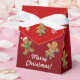 Prepare for this year's Christmas party with these cute red favour boxes decorated with sweet gingerbread cookies and white snowflakes! Use a custom text to personalise them on both faces, and create a strong impression on your guests!