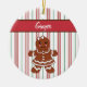Peppermint stripes and a gingerbread girl decorate this Christmas ornament! Customise this ornament by changing the name. Use this cute gingerbread ornament as a gift, Christmas tree decoration, decor, etc....The designs are from original art.