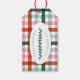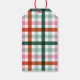 Personalised Gingham Christmas Pattern Gift Tag, with Red, Pink and Green trendy Christmas colour combination. A simple bright, and classic gingham with a modern twist. A cute garland detail at the centre with option to personalise with Merry Christmas and your Family Name.
