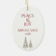 This Peace & Joy holiday Christmas tree ornament features a beautiful giraffe and set of decorative Christmas trees. It can be personalised with a name, year and any text that you wish.