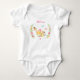 Personalised baby girl's bodysuit featuring a cute baby bunny and colourful floral wreath. Can be ordered in different sizes and styles. Made to match my Sweet Bunny Collection.