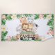 Personalised Girl Jungle Safari Kids Beach Towel. Designed with Jungle Baby Animals on Safari and a tropical leave border. Cava Party Design.