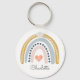 Modern adorable boho pastel rainbow watercolor key chain for a girl with pink heart in the middle.