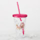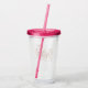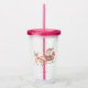 Pink tumbler with a reindeer, pulling santa on his sleigh with personalised name on sleigh.