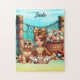 Personalised Girl's name sitting with her puppy Jigsaw Puzzle