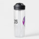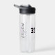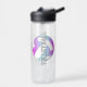 This volleyball themed water bottle for her features the word "Volleyball" vertically orientated over a colourful volleyball that has a pink / purple / blue stylised gradient - personalise with the athlete's name and jersey number - by katz_d_zynes