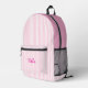Personalised pink lines girls Printed Backpack.Add a splash of style to your little one’s daily adventures with our Personalised Pink Lines Girls Printed Backpack. Featuring a chic and modern pink stripe design, this backpack is both cute and functional — perfect for school, playdates, or travel. Personalise it with your child’s name to make it uniquely hers! With spacious compartments, adjustable straps, and durable fabric, it’s designed to keep up with her busy, colourful world in the most stylish way.