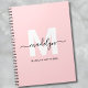 Personalised Elegant Modern Blush Pink Script Name Initial Monogram Spiral Notebook. This simple and girly notebook features a soft blush pink background with a clean white initial that pairs beautifully with a hand-lettered black script name. Below the initial, the full first and last name is printed in a sleek, modern font, creating a polished and feminine look.