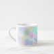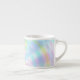 Create a stylish faux holographic espresso cup with monogram and iridescent design in pastel unicorn rainbow colours.
