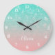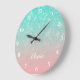 Personalised Girly Mint Pink Glitter Glam Ombre Large Clock