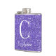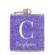 Personalised Girly Purple Sparkle Glitter Monogram Hip Flask with faux glitter and your custom name and monogram.
