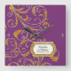 NOTE: This is a flat printed image, there are no jewels, raised layers or gold metallic elements. COLOR PALETTE: violet purple, soft creamy white with faux gold metallic glitter look DESIGN COLLECTION: Matching personalised wedding clock for anniversary, bridal shower or wedding gift. Inspired by Old Hollywood and her heyday glam era, this wedding invitation set is perfect for elegant, sophisticated, modern wedding celebrations. A classic, beautiful swirling leaf damask style pattern has been graphically designed to look like a silver edged gold glittery embroidered lace design with a golden buckle that has a diamond border over faux glitter. A contemporary typography layout for your invite wording and information updates this vintage retro design. A gorgeous, unique and pretty design for the most discriminating bride.