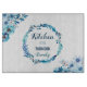 Custom glass chopping board, add your own text. Decorative watercolor floral motifs, blue and green flowers and floral wreath. From the BellaBlue collection. Matching item are available! Stylish home decor gift.