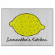 Personalised glass cutting board with yellow lemon and custom text, name or monogram. Cute gift idea for kitchen or restaurant. Hand drawn Citrus fruit illustration. Kitchen gifts for women; mum, aunt, sister, friends, wife etc.