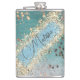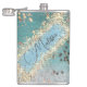 Personalised Glitter Gold Stars on Teal Hip Flask